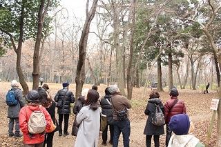 平成29年12月8日(金曜日)、森の図書館で「初心者のための野鳥観察」が開催されました。森の図書館周辺は、東深井地区公園(古墳公園)や利根運河など木々に囲まれた自然豊かな場所です。初心者向けに行なわれたこの日のイベントは、多くの野鳥が見られる図書館周辺に出向き、野鳥観察を通じて、流山の自然を身近に感じていただくために企画されました。解説は、「日本野鳥の会」や「藤代野鳥と楽しむ会」に所属している森の図書館の司書です。日頃から図書館周辺を散策している地元の方や、最近お子さんと共に野鳥に興味を持ち始めたという方など、15人の方が参加しました。