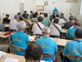 史跡ガイドの会の田村会長から、北部地区の石神仏の解説を聞いたあと、参加者30人が史跡ガイドの会の案内のもと約5キロメートルの距離を歩きました。