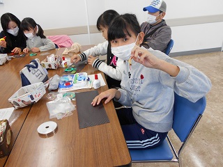 参加した児童からは「縫うのが難しかったけど楽しかったです。最後にくつの形になるのがうれしかったです」「完成したリースを家にあるクリスマスツリーに飾ります」などの感想がありました。また保護者からは「自宅では教えることが出来ない作業を教えてもらい、貴重な時間でした」などの感想があり、とても満足の様子でした。