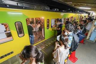 今年も走る電車の中でビールを楽しむプレミアムコンサートを、イベントに先駆けて開催。流山駅と馬橋駅往復32分の旅を、世界で活躍する青木研さんを筆頭とした演奏とともに楽しみました。平和台からお越しの大塚隆一さんと晴江さんは、「普段使っている流鉄とは全く違った空間を、軽快な音楽とお酒とともに楽しめてとても楽しかったです。この非日常の空間を、またぜひ味わいたいです」と語ってくれました。