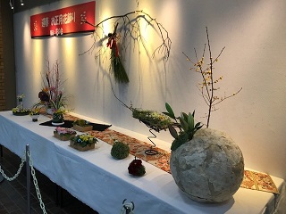 今回は特に、和紙で作られた花器に飾られたユリのアレンジメントが人目を引き、訪れた方々からは「花と花器が調和して、日本の美を感じました」「お正月らしくてとても綺麗です」などの声が聞かれました。