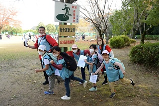 午前中に行った「謎解きウォークラリー」は、総合運動公園内に9カ所のチェックポイントが設置された約2キロメートルのコース。子どもたちは、宝の地図に描かれたチェックポイントで、クイズやゲームを行いながらゴールにある宝箱を目指しました。チームワーク、時間の正確さ、判断力、注意力が必要とされ、どの班も真剣に取り組んでいました。