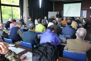 地図研究家の今尾さんは、地図や地名などにまつわる多数の本を著し、テレビ番組にも数多く出演しています。講演会でも、わかりやすい語り口で、地名の起源や由来の例を紹介した後、近代以降の地方行政制度によって日本の地名がどのように改変されてきたかを概説、流山市についても新旧の地形図を提示して、変化の跡をたどりました。最後に、地名は過去と現在を結ぶ縦糸としての役割を果たすものと、歴史的地名を保存することの意義を強調しました。