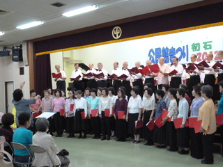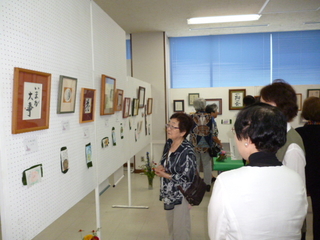 9月14日から17日までの4日間、「公民館まつり初石2012」が開催され、多くの来場者が緑の中で秋の一日を楽しみました。日ごろから公民館で腕を磨いているサークルの皆さんが自分の作品や演技を発表する年に一度の機会。公民館の会議室、講義室には書道、俳句、写真、生け花、洋裁、はがき絵など各サークルと西初石中学校総合文化部の力作が所狭しと展示され、ロビーには手話教室も開かれました。
