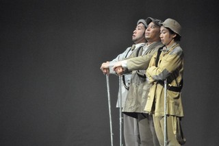 小池博史さんは、「2011年3月11日以降、自問自答し続けては、30年続けた組織を解体させ、真っ先に生み出した作品です。人間と自然の関係を問い直し、私たち自身に向かっての回答としてではなく、疑問として提示しています」と語っています。キャストは、小谷野哲郎、大塚陽、荒木亜矢子の3人。演じ、踊り、人間になったり、動物になったり、不思議な舞台が展開されていきました。文庫本で15ページほどの短編童話を上演時間約70分の舞台に仕立て、3人は全員出演しっぱなし。キレのあるダンスやアクションで魅了します。