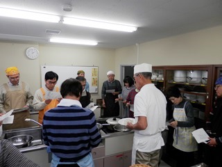 今回は4人前600グラムのおそばを打つと、1人前だけ打ちたてのそばを公民館の調理室で茹でて試食しました。「家で作るそばよりおいしいわ」「苦労したけど食べると疲れがとれます」「そばが切れてなくてつながっちゃった」と、みなさん大変楽しんでいる様子でした。