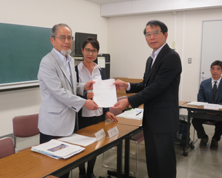 令和元年11月20日、流山市生涯学習審議会の辻野会長が市教育委員会を訪れ、後田教育長に答申書を手渡しました。