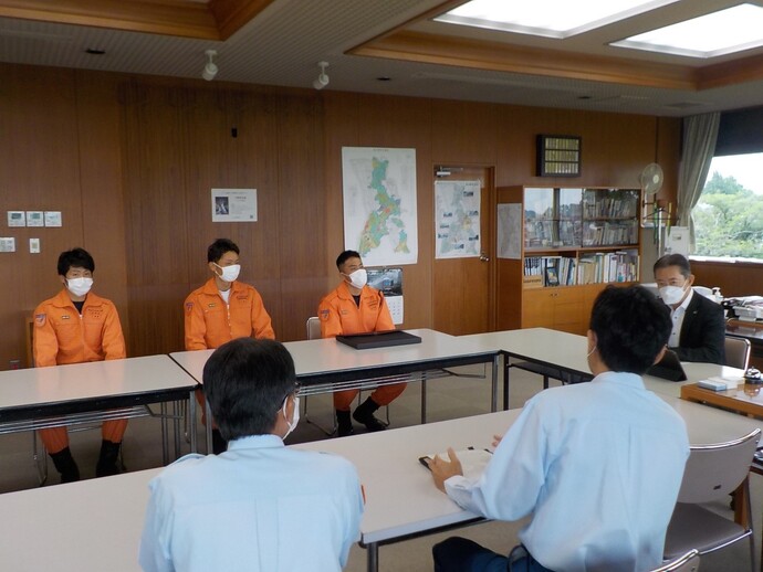 第47回消防救助技術千葉県大会に出場し、応用登はん訓練の部において千葉県1位の成績を収め、流山市長に報告しました。